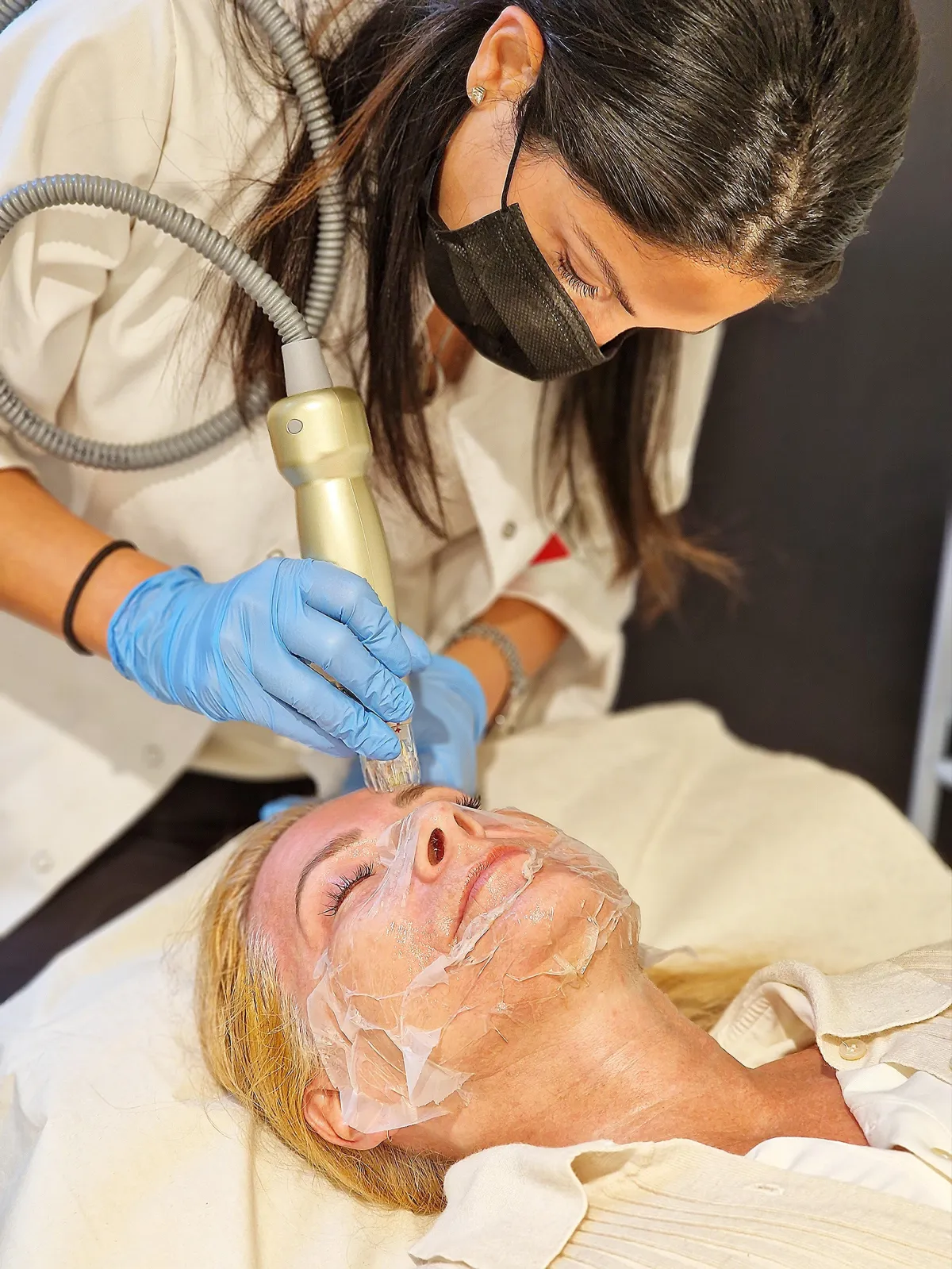 Vi avslutar med ett ansiktsserum & an lugnande mask läggs direkt efter behandlingen.
